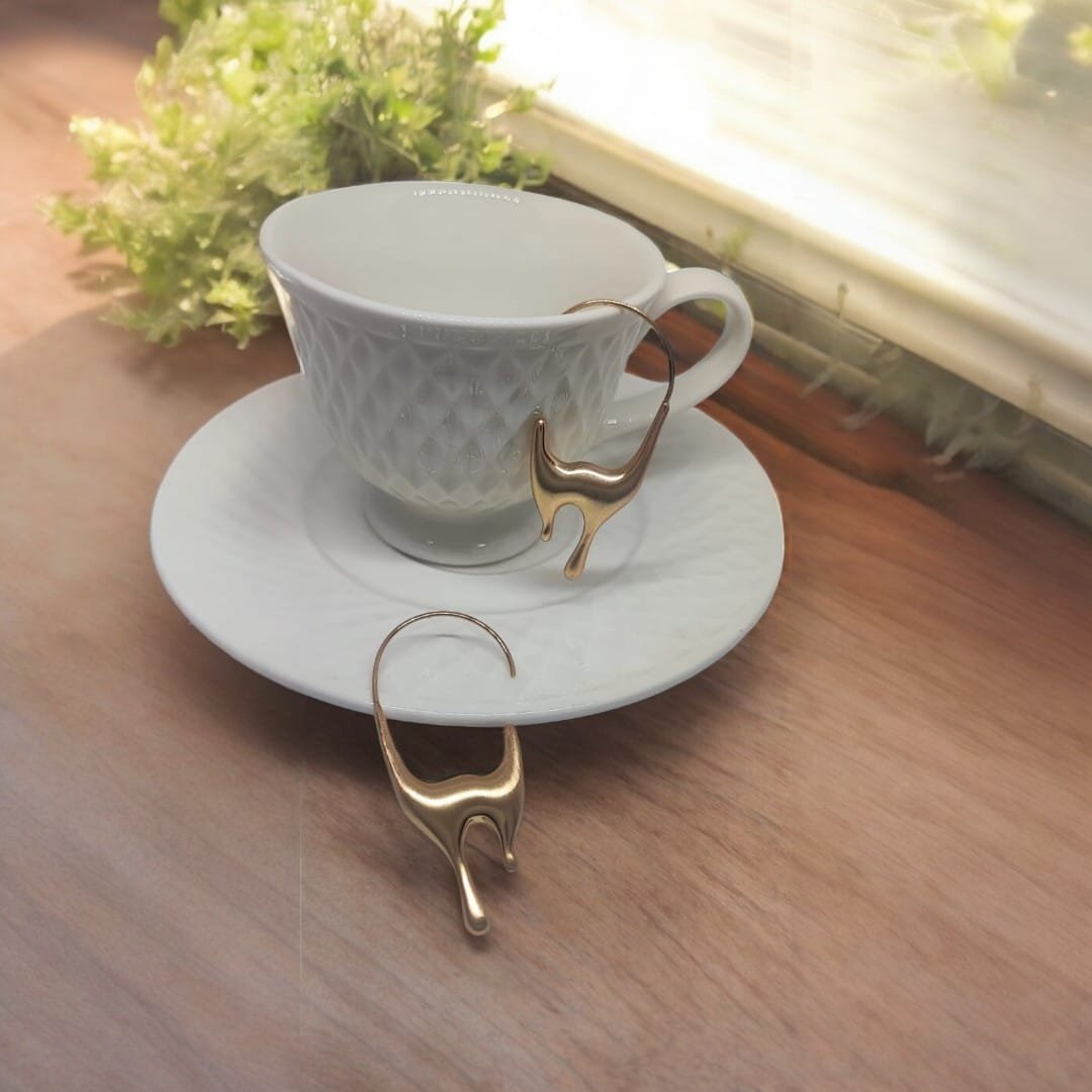 Brinco argola chunky dourado, possui o formato em argola disforme derretido com sua superfície lisa e polida. São acessórios marcantes e cheios de personalidade. Eles se destacam por seu tamanho robusto e materiais livres de níquel.