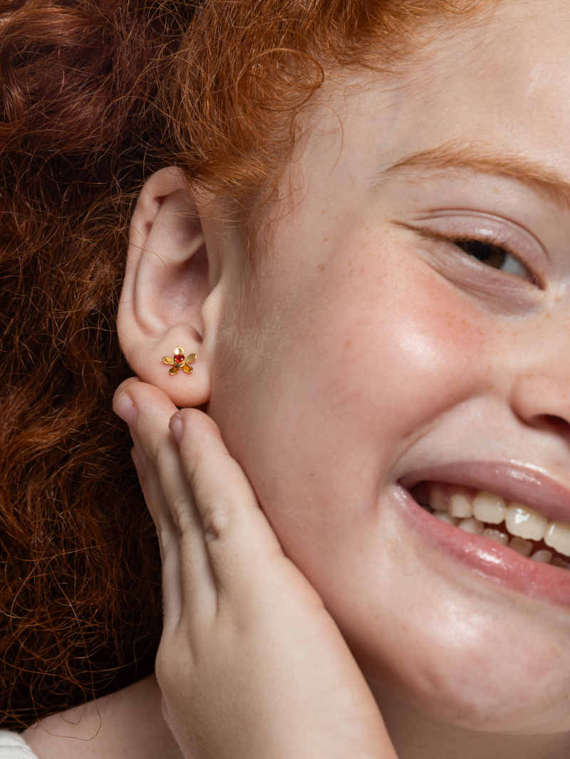 Brinco Florzinha Zircônia Vermelha