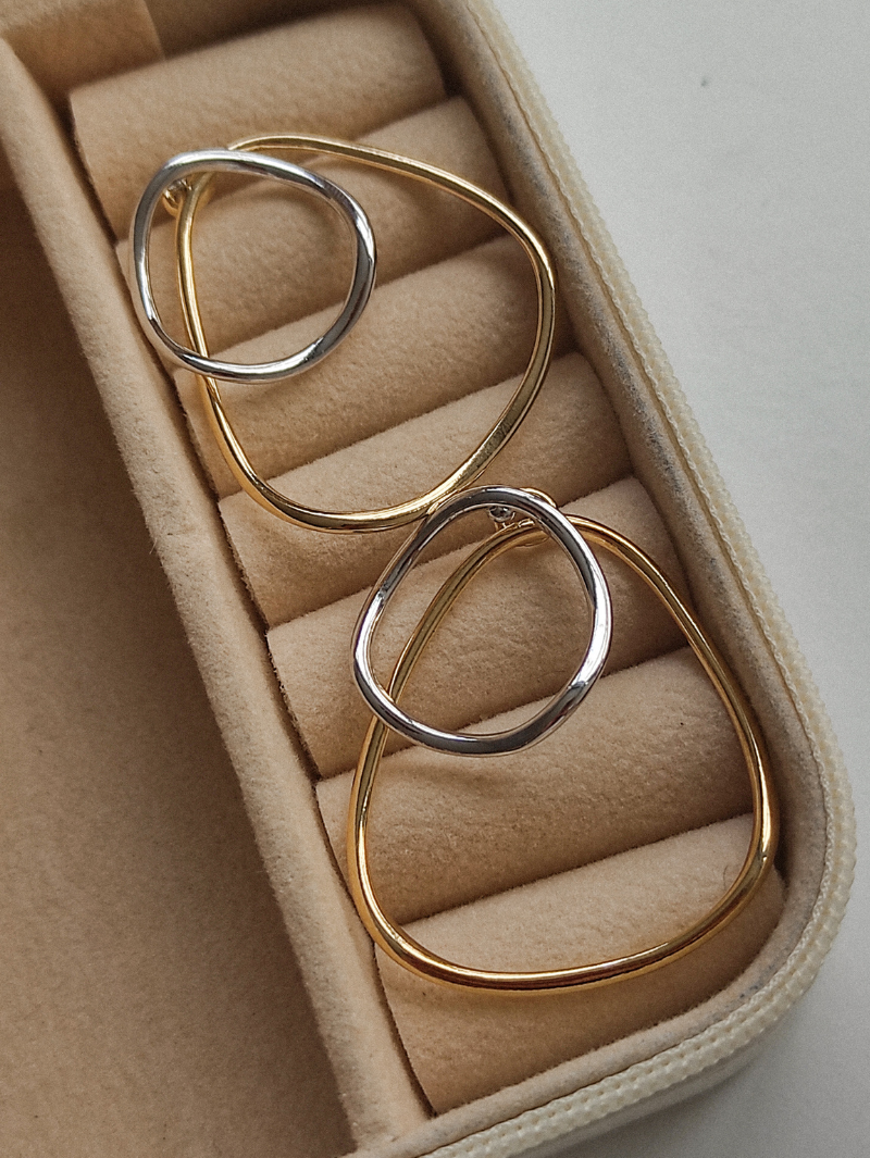 Este elegante brinco de ouro 18K apresenta um design moderno, podendo ser