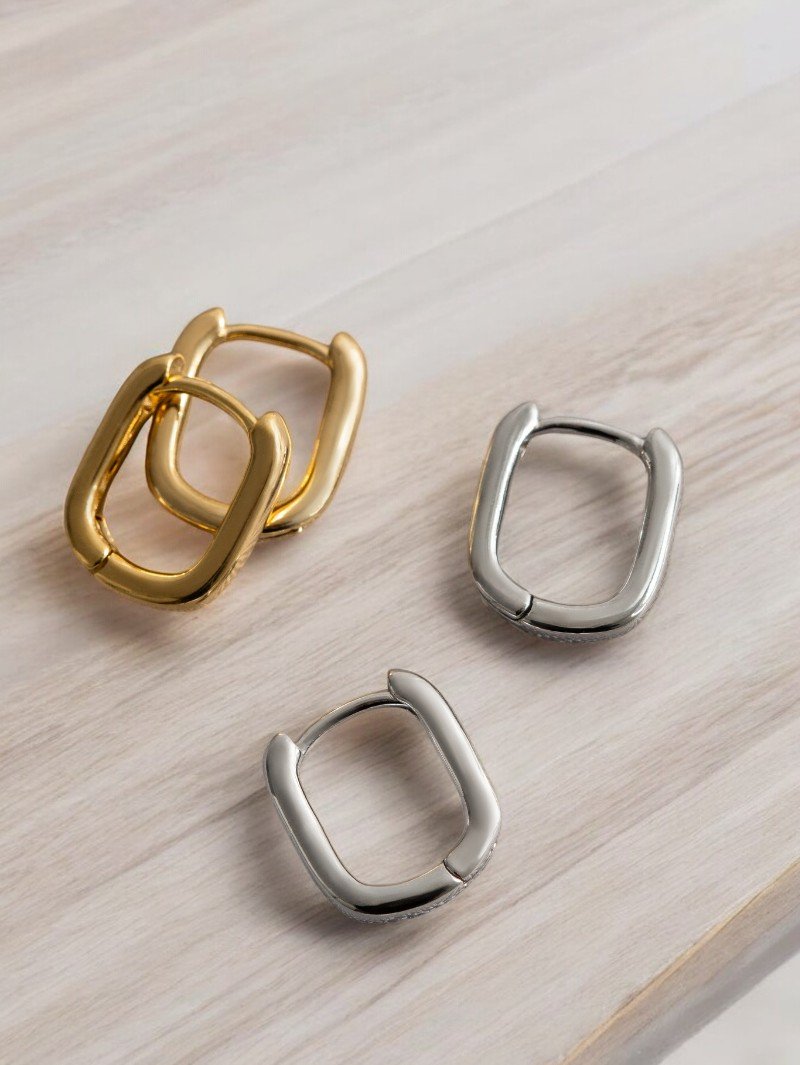 Este elegante brinco banhado em Ouro 18k apresenta um design moderno, podendo ser