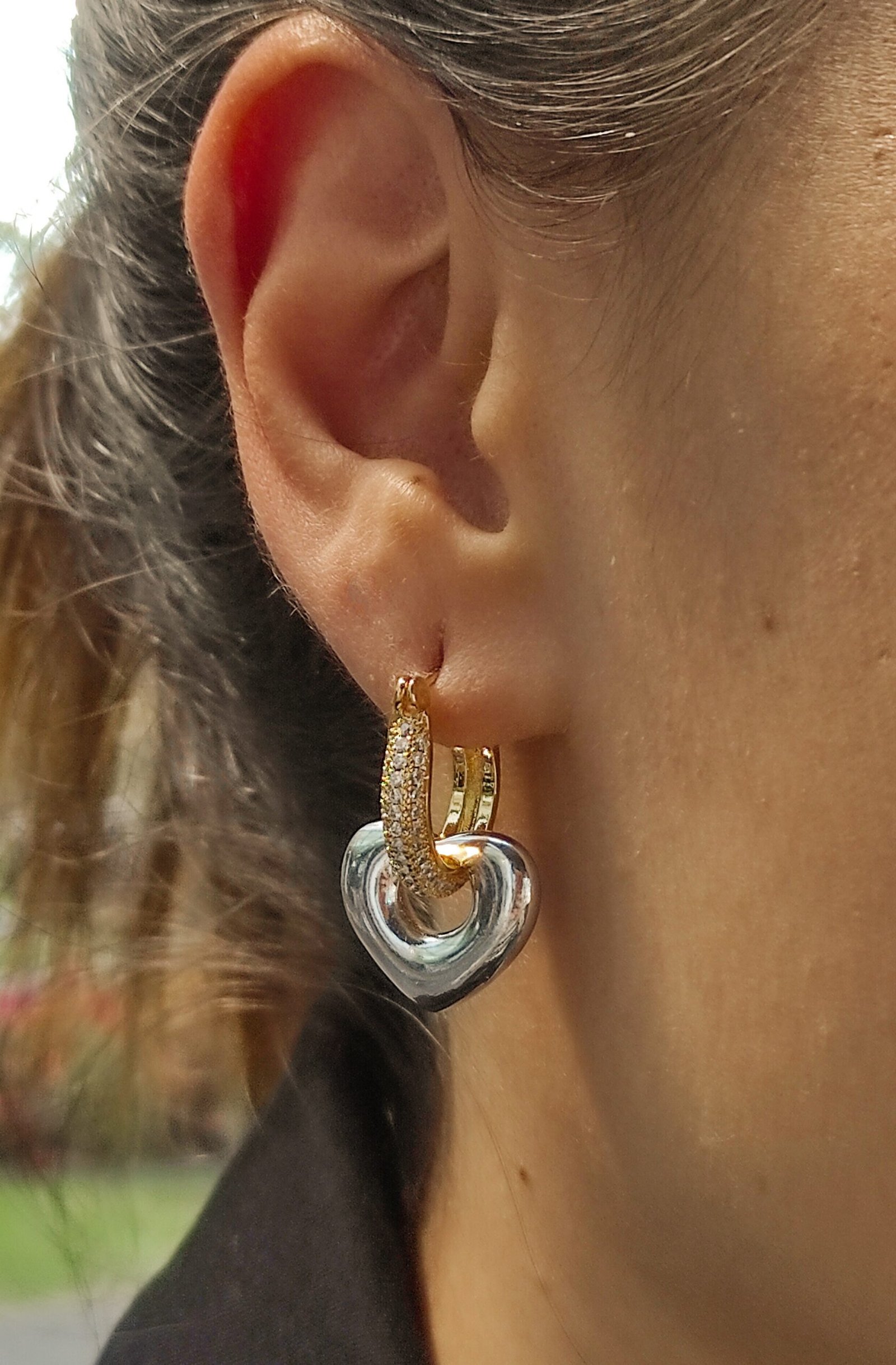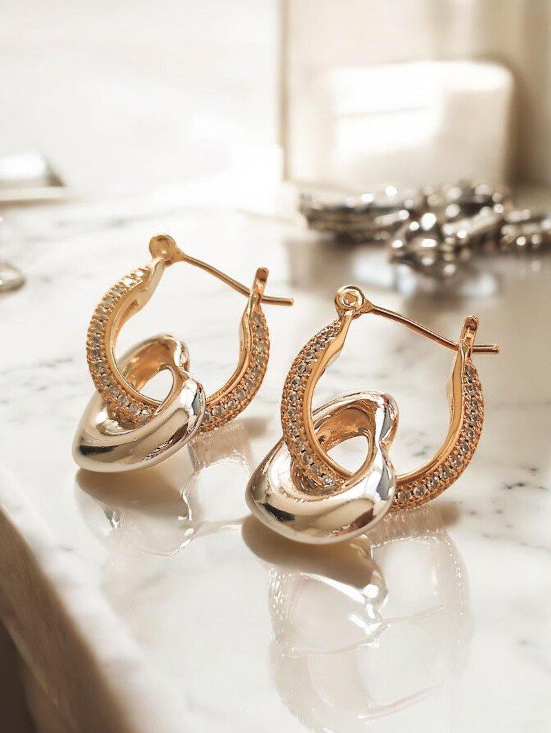 Este elegante brinco de ouro 18K apresenta um design moderno, podendo ser