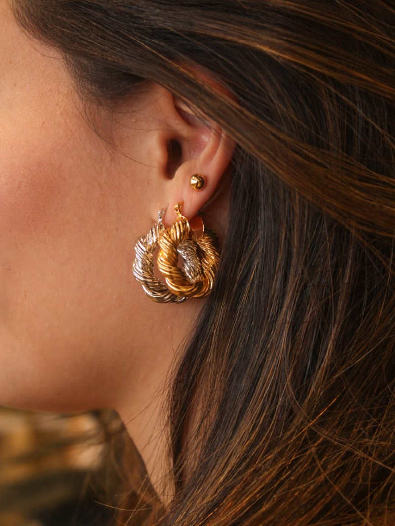 Este elegante brinco de ouro 18K apresenta um design moderno, podendo ser
