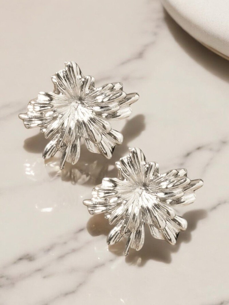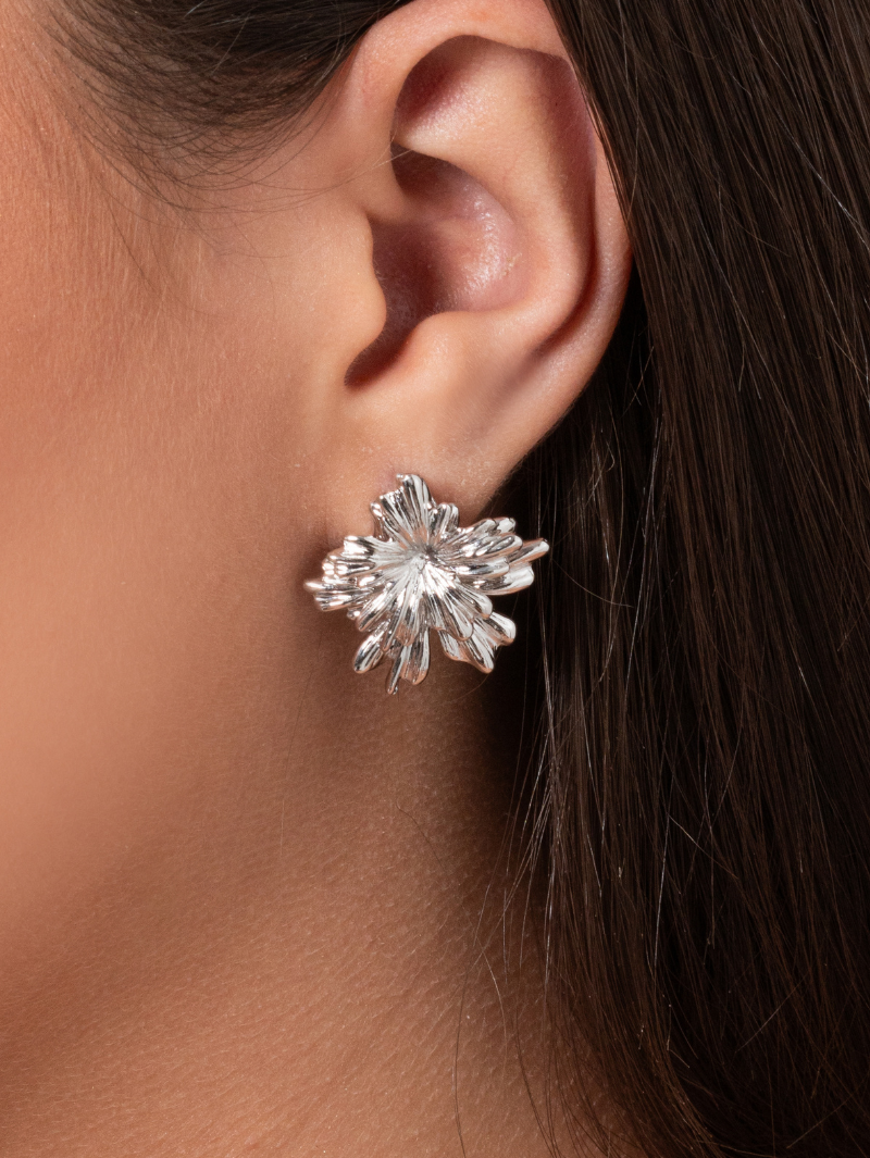 Este elegante brinco banhado em Ródio Branco apresenta um design moderno, podendo ser